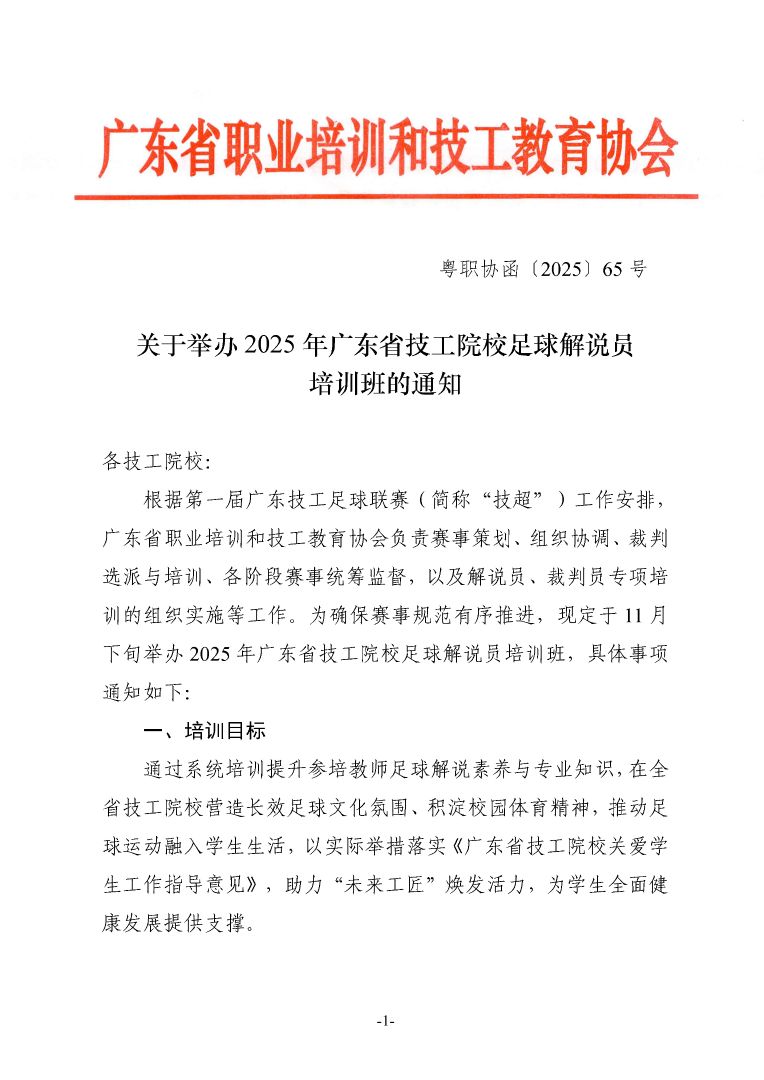 关于举办2025 年广东省技工院校足球解说员培训班的通知