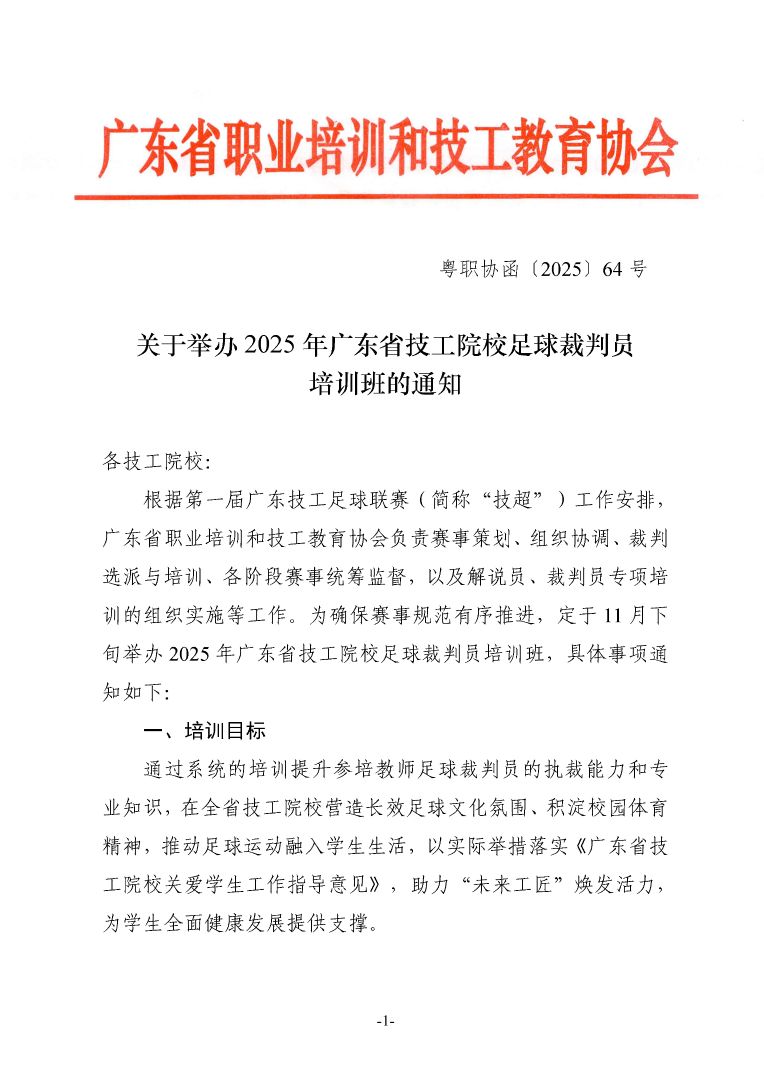关于举办2025 年广东省技工院校足球裁判员培训班的通知